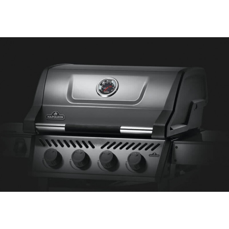 Il barbecue a gas Napoleone Freestyle 425 con 5 fuochi di cui 1 a gas propano laterale a infrarossi è un barbecue compatto con griglie in ghisa smaltata, a Accensione a getto e un ripiano laterale pieghevole, consente una cottura uniforme, facile e veloce.