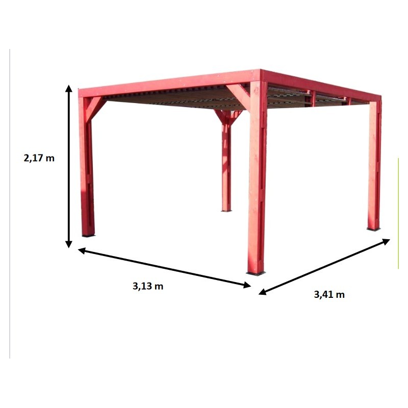 • Materiale: pergolato in abete rosso trattato ad alta temperatura con montanti 12 x 12 cm (2 pezzi di 12 x 4 cm assemblati con viti da 7 cm)