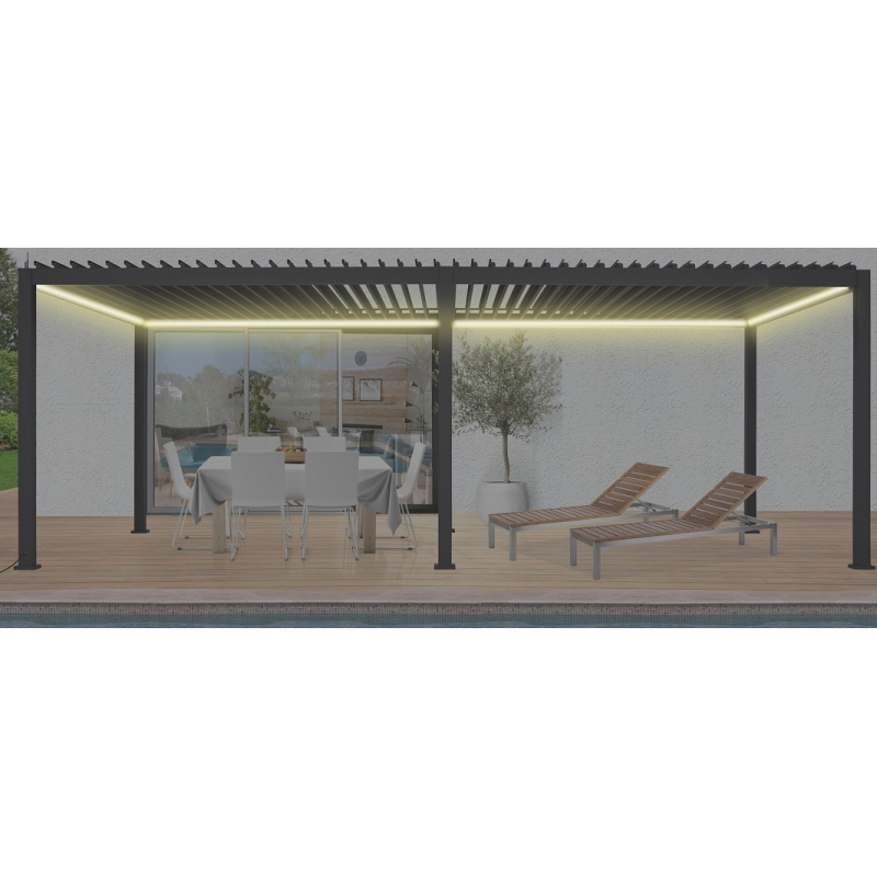 Pergola bioclimatica elettrica Strisce LED in alluminio 18m2.