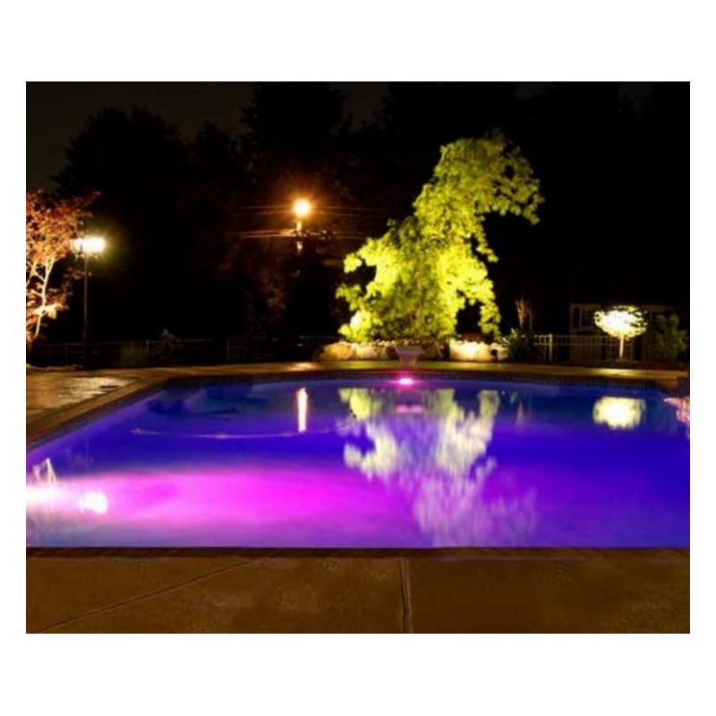 Potente luce per piscina a LED RGBW, con telecomando per 6 programmi di luce e una scelta di 4 colori, rosso, blu, verde e bianco.
