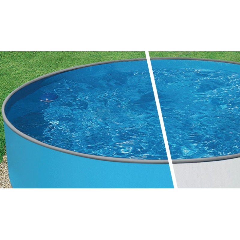 Goditi tutti i vantaggi di una piscina tradizionale con facilità grazie alle piscine rotonde Azuro bianche a doppio colore reversibile blu.