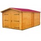 Garage in legno massello Habrita 21m2 con assi 28mm e tetto in lamiera ondulata Habrita.