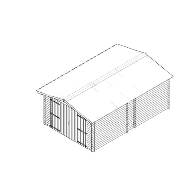 Garage in legno massello Habrita 21m2 con assi 28mm e Habrita Corrugated Plate Roof.