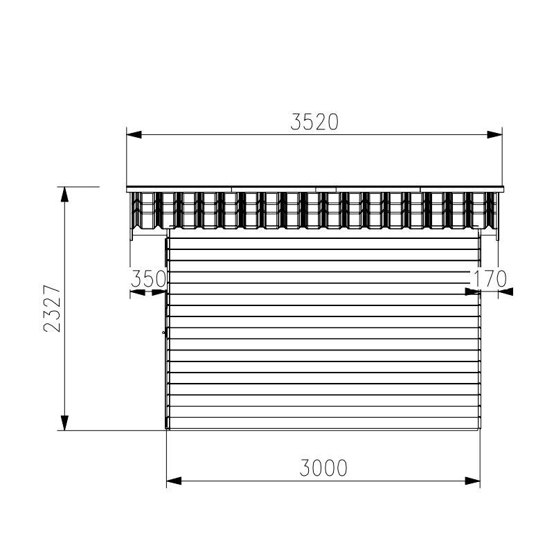 L'ampia porta doppia di 160x182cm è dotata di lucernari fissi con vetri in PVC e di altre due finestre ai lati della porta (51x58cm).