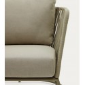 L'intreccio in corda dei braccioli e dello schienale ne ammorbidisce l'aspetto generale, per un perfetto equilibrio tra modernità e convivialità.