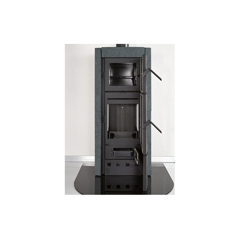 Porta resistente al momento : Le porte della stufa, realizzate in ghisa, sono inalterabili nel tempo e garantiscono una tenuta costante.