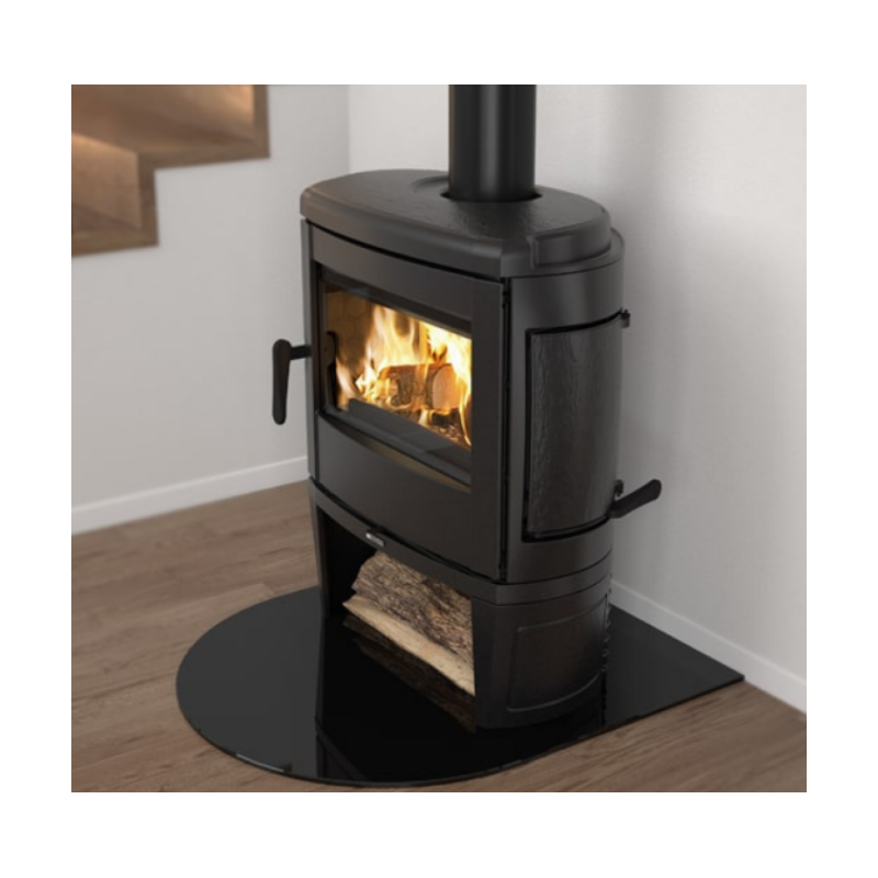 La stufa a legna in ghisa utilizza ceppi di legno fino a 50 cm.