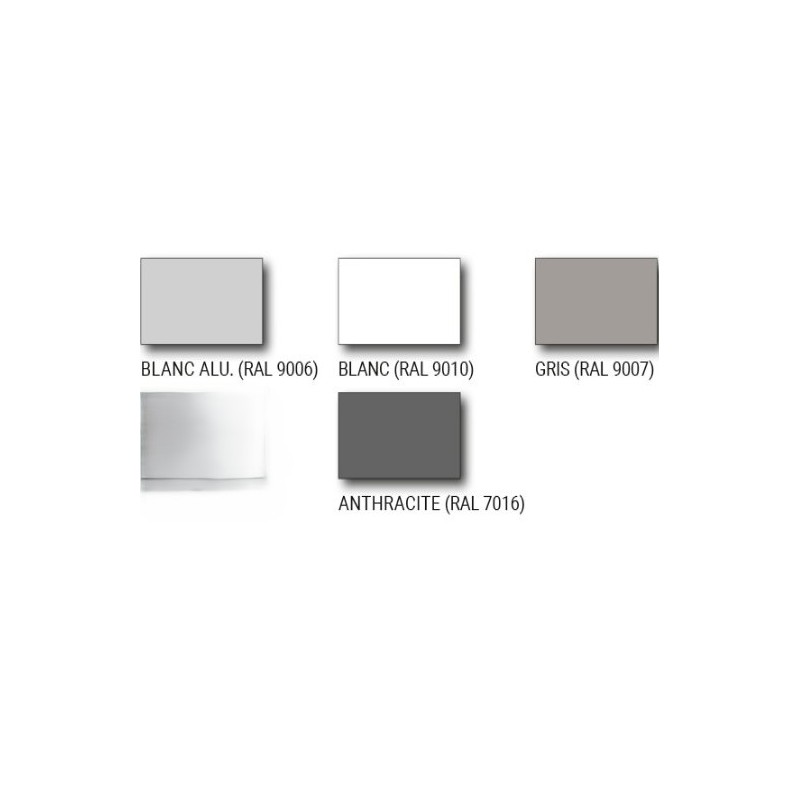 Branco Alumínio Texturizado (RAL 9006), Branco Texturizado (RAL 9010), Cinzento Antracite Texturizado (RAL 7016), Cinzento Alumínio Texturizado (RAL 9007).