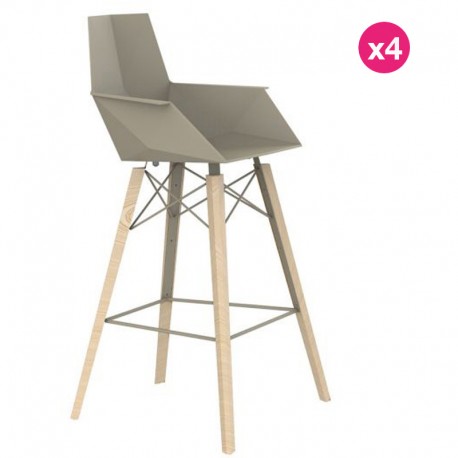 Conjunto de 4 Vondom Faz Wood1 bancos de bar sem branqueamento com pés de carvalho branqueado e apoios de braço