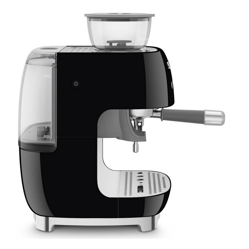 Máquina de café expresso Smeg 50 com moedor cromado preto.