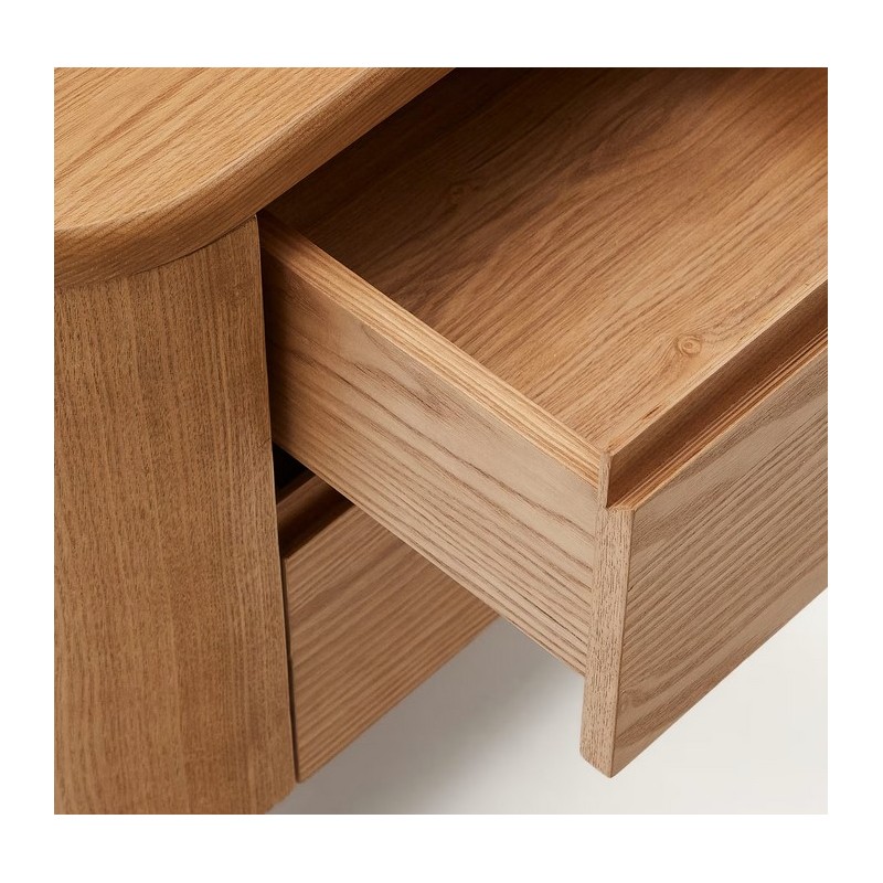 Mesa de cabeceira Saly em contraplacado de freixo FSC e pés em cama de cinzas com acabamento natural e gavetas.