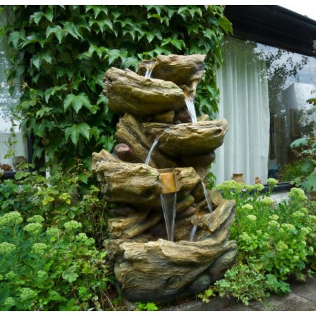 A Fonte Sedonas Ubbink, uma cachoeira majestosa que imita a forma natural de troncos de árvores antigas. As cachoeiras se formam ao nível das bacias e são iluminadas por LEDs. Completo com bomba para o jardim pronto para uso