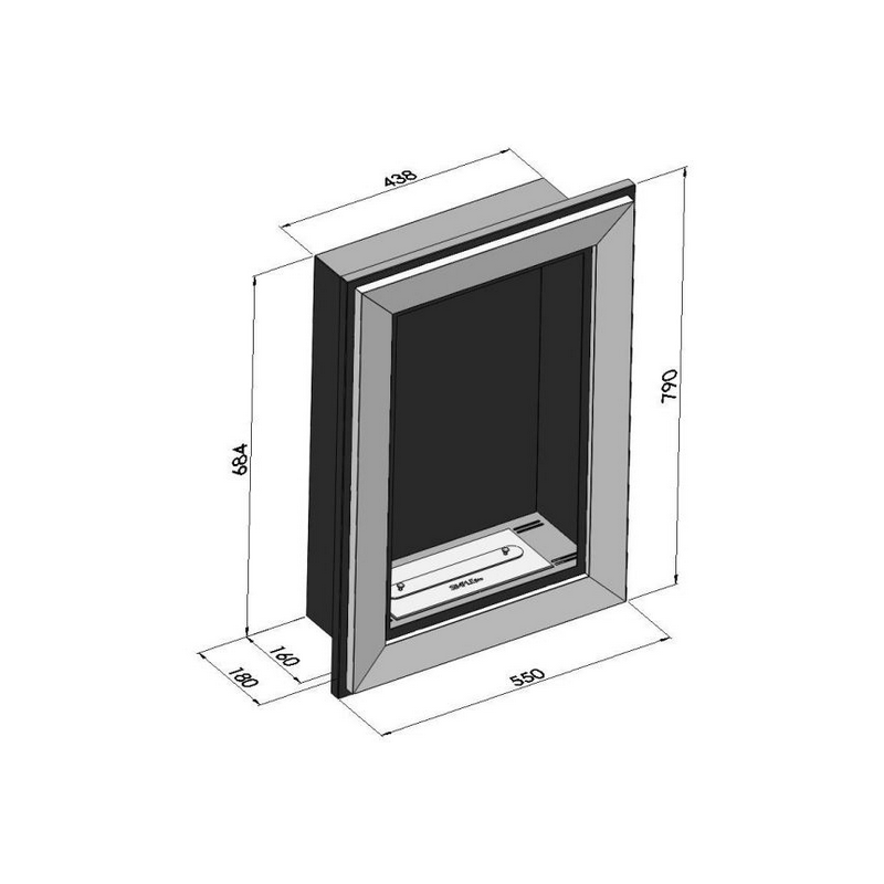 Lareira a bioetanol SIMPLEfire Moldura 550 preto com 1 painel de vidro.