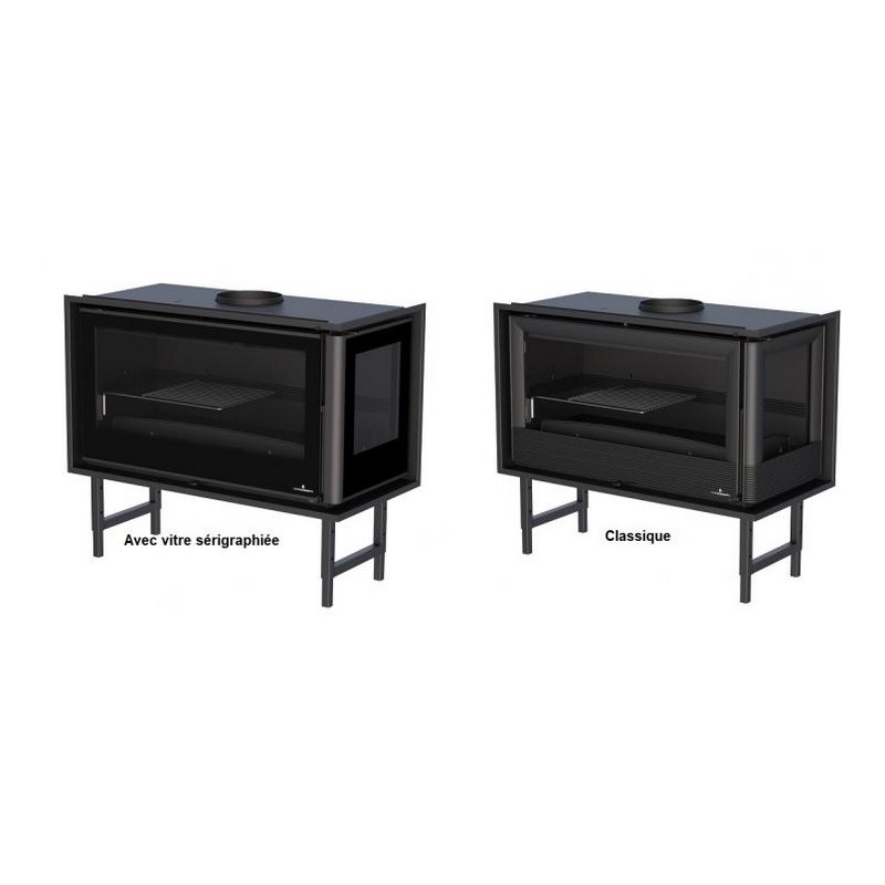 Volume aquecido: 350m3- Eficiência 77% - Porta e grade de cinzeiro de ferro fundido - Lareira de ferro fundido - Sistema de combustão dupla e vidro limpo - 2 saídas de ar quente dutáveis. Vidro vitrocerâmico resistente a 750 °C no ângulo reto.