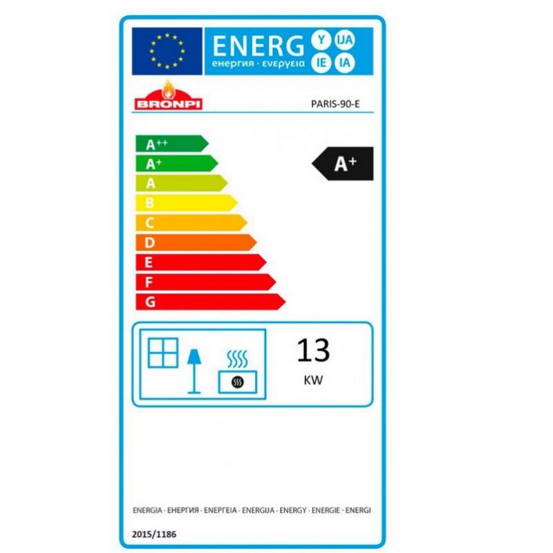 Inserção de madeira de canto envidraçado direito Bronpi Paris 90-ED Vision 14kW com turbina.