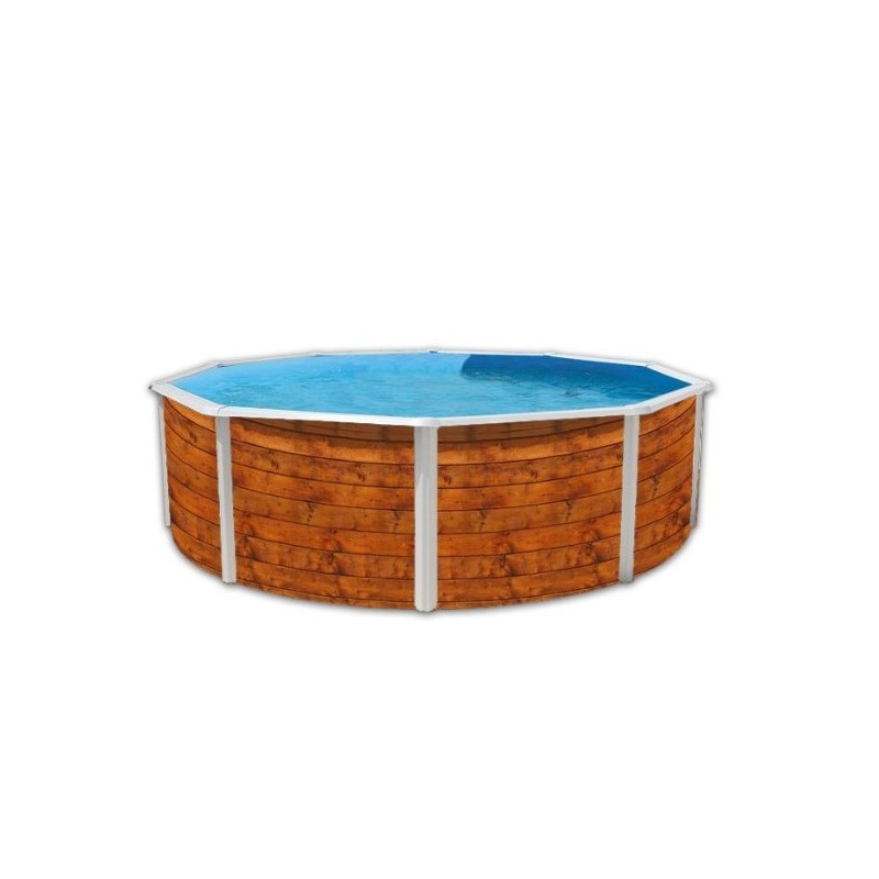 Piscina redonda TOI Etnica • 1,20 m de altura Decoração em madeira com escada, escumadeira, forro, perfis, filtro de areia.