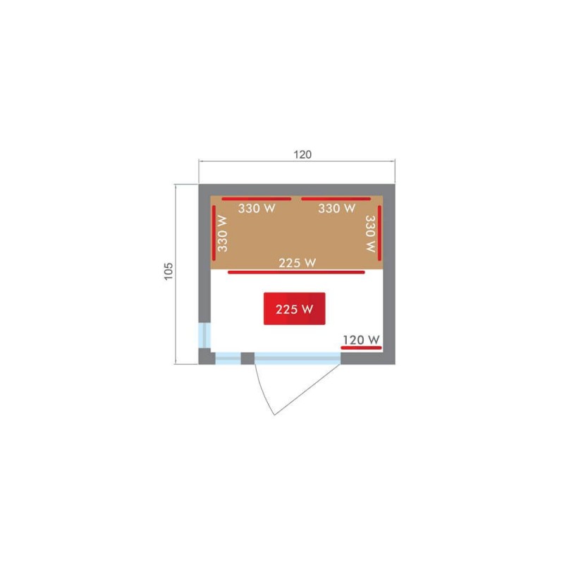 O equipamento padrão da sauna infravermelha Apollon Quartz de 2 lugares: