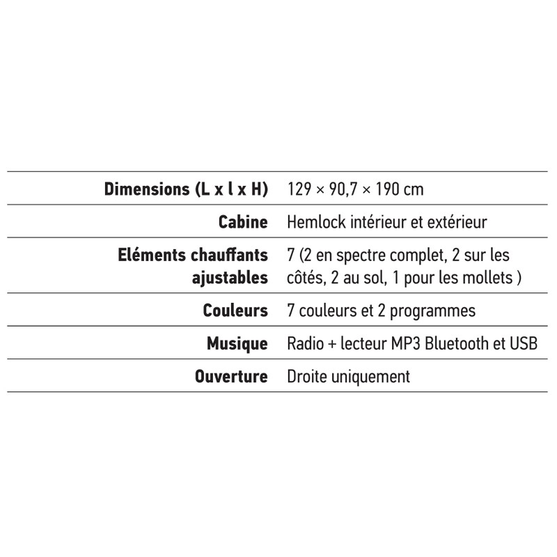 -Elementos de aquecimento ajustáveis: 7 (2 espectro completo, 2 lados, 2 piso, 1 panturrilha)