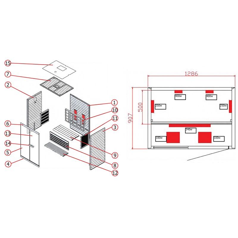 -2x aquecedor infravermelho de espectro completo e luz vermelha de 400W (traseira)