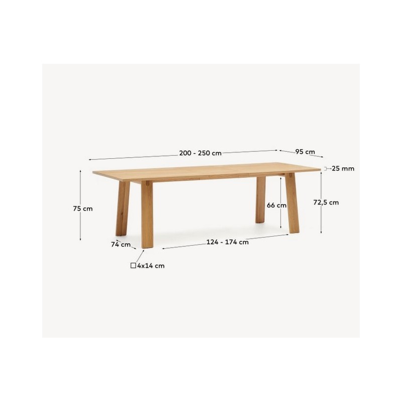 Mesa retangular extensível com tampo Feito de madeira compensada de carvalho e pernas de madeira maciça com extensões de até 250cm.