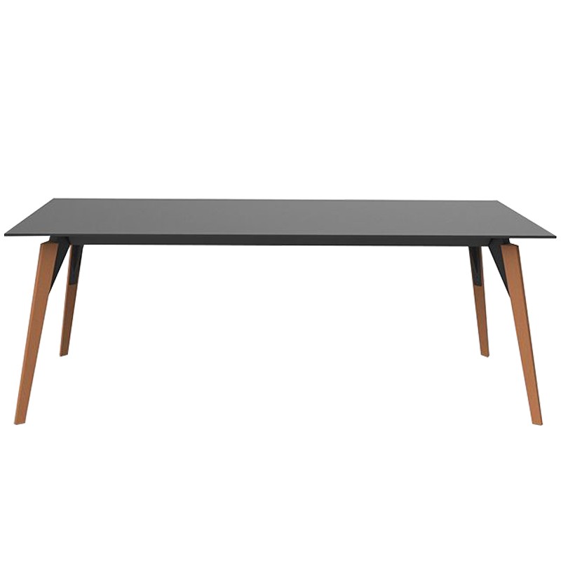Mesa Vondom Faz Bandeja 200x100 branco e pés de carvalho natural.
